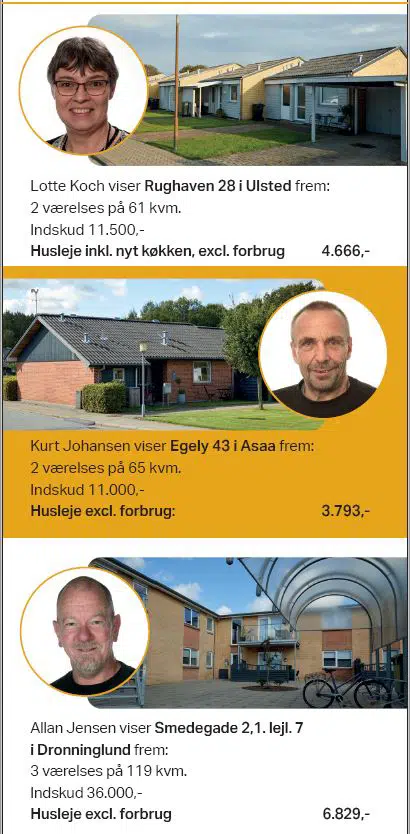 Fremvisning af ledige boliger i Ulsted, Asaa ogDronninglund
