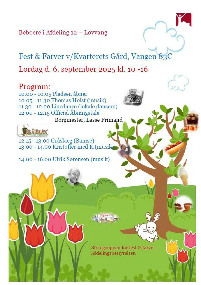 Lørdag afholder Løvvangen den årlige byfest Fest og Farver, og igen i år er der et flot program for dagen.