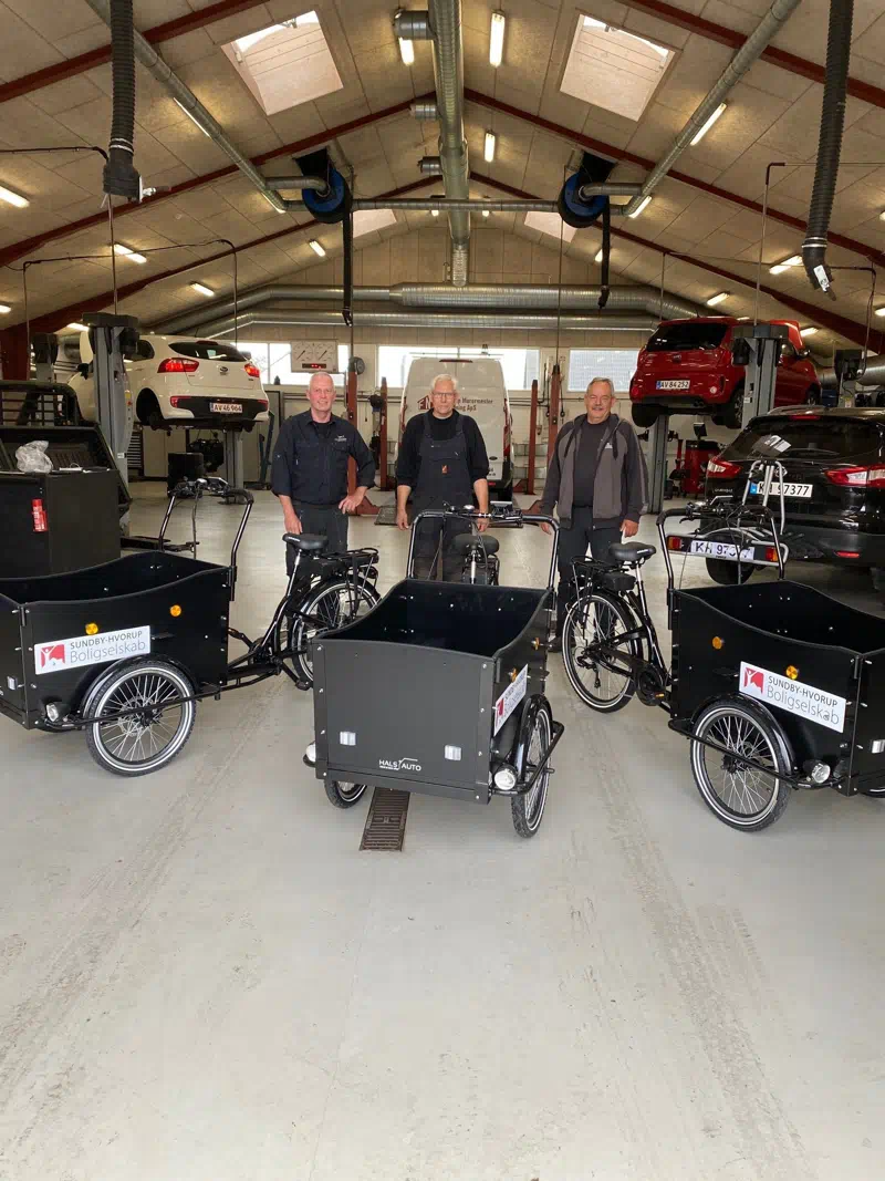 På billedet ses fra venstre ejendomsfunktionær Lars Thomsen, Karsten Sørensen fra Hals Auto og ejendomsfunktionær Michael Jensen.