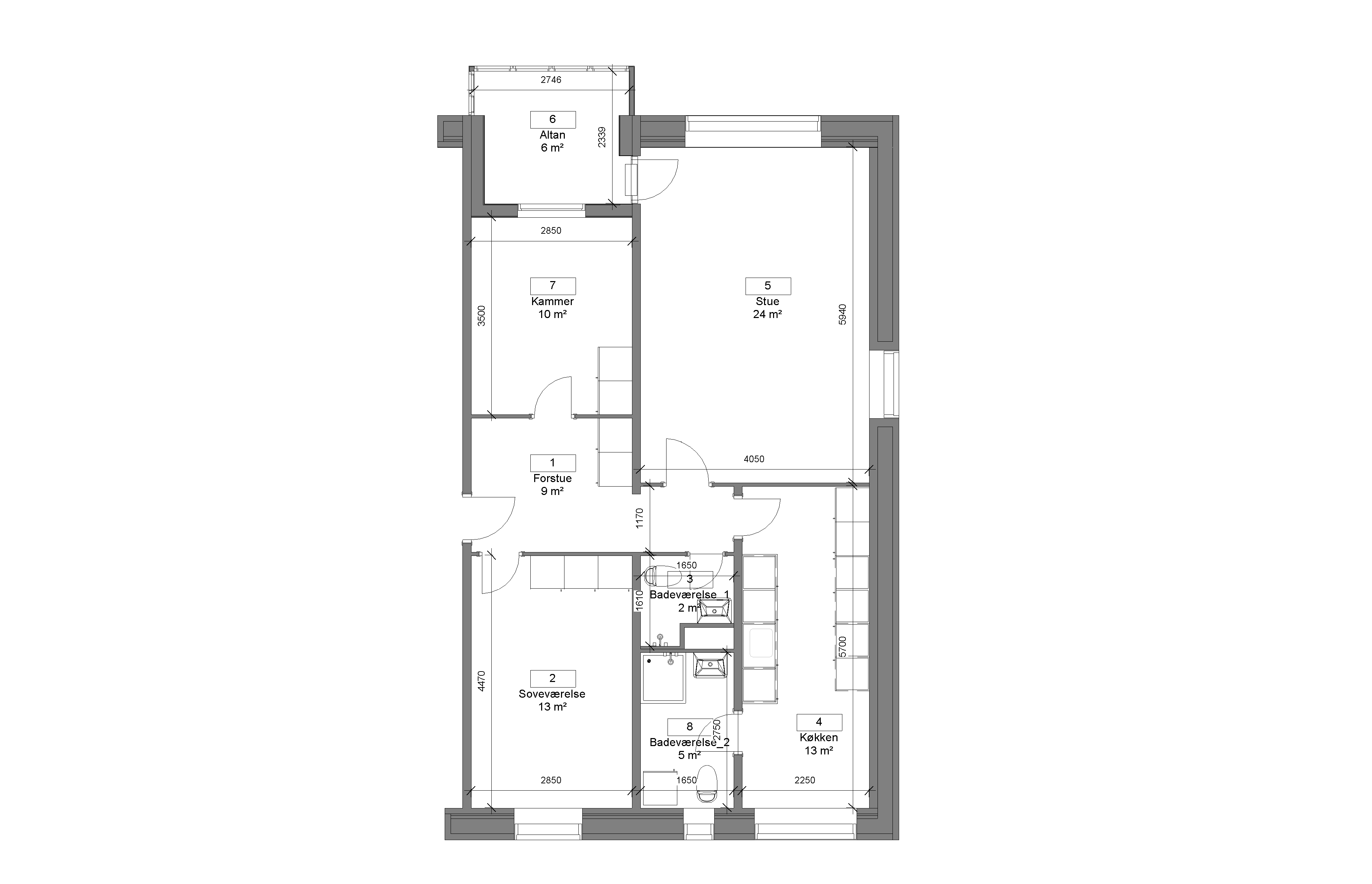 Der er komfur, køleskab og emhætte i lejligheden. I 3 og 4 rumboligerne er der tillige vaskemaskine.