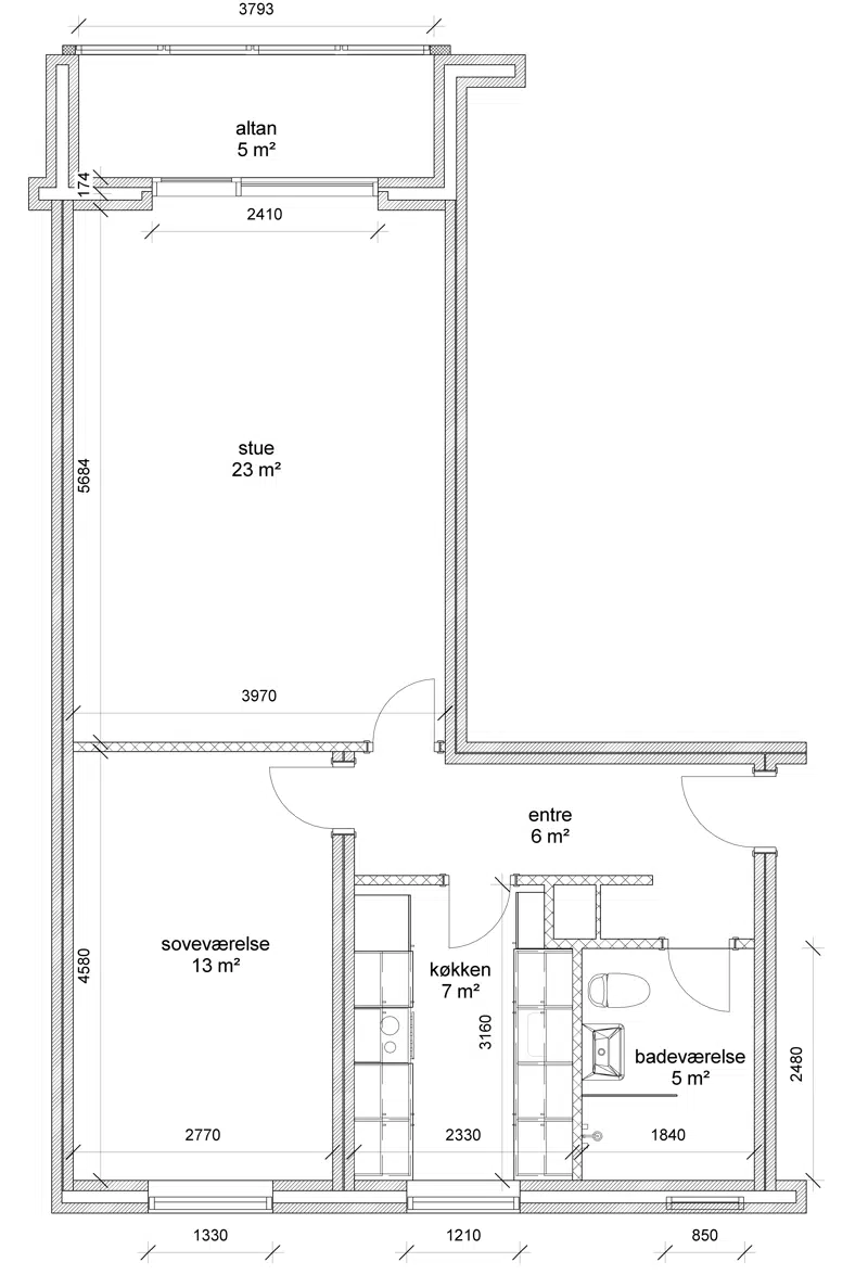 Der er komfur og emhætte i lejligheden. Lejeren medbringer selv køleskab.