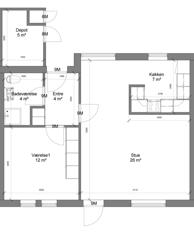 Der er komfur og emhætte i alle boliger. På Mejlstedvej er der tillige køleskab. Lejeren medbringer selv køleskab på Hanebjælken og Niels Lyhnes Vej.