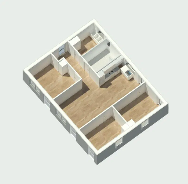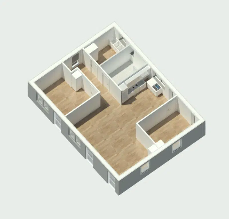 Der er komfur, emhætte og køleskab i lejligheden. Dog medbringer lejeren selv køleskab på Lille Dybet og Idræts Alle.