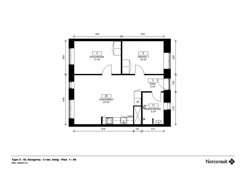 Alle lejemål er lyse og venlige med hvide vægge og lofter samt flotte slidstærke vinylparkettrægulve, så du nemt kan sætte dit eget personlige præg. Boligerne har alle lyst køkken og skab fra JKE Design i moderne design. Derudover har boligerne et godt lysindfald fra de store vinduespartier, som er udført i den højde således vindueskarmene har dobbeltfunktion i form af siddeniche. Fra de øverste af boligerne kan du nyde den flotte udsigt over nærområdet - by, grønne områder og Limfjorden.