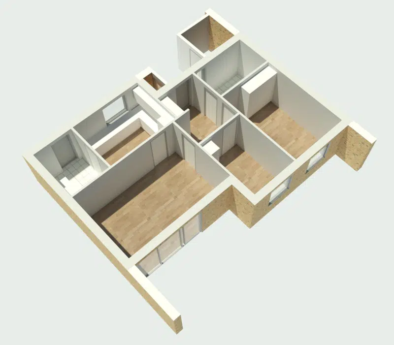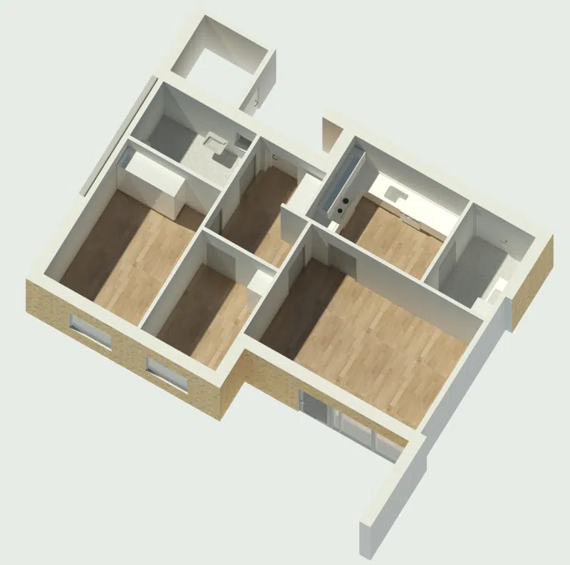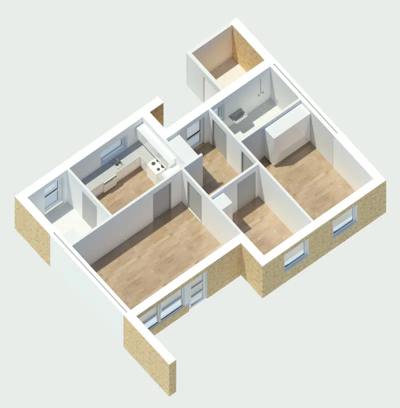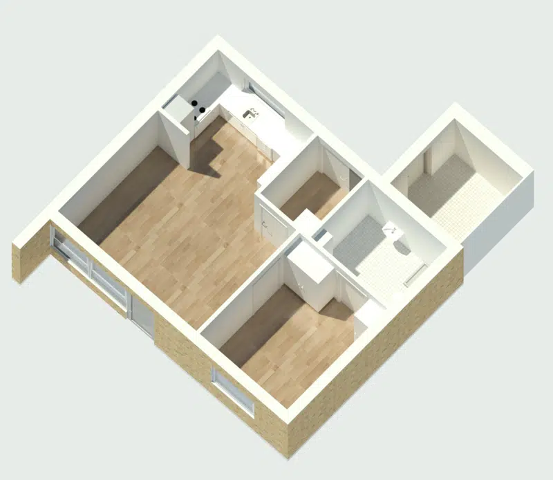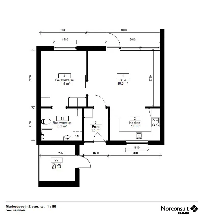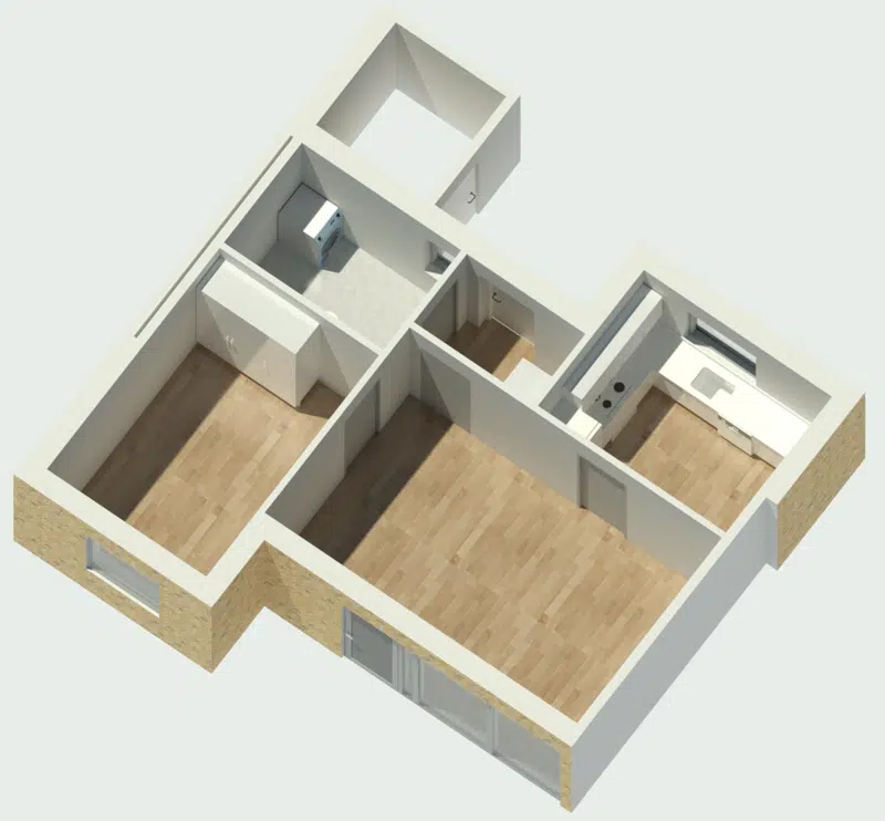 Hovedparten af lejemålene har komfur, emhætte samt køleskab. Dog er der ikke køleskab på Markeds Vej og Hellevadlund.