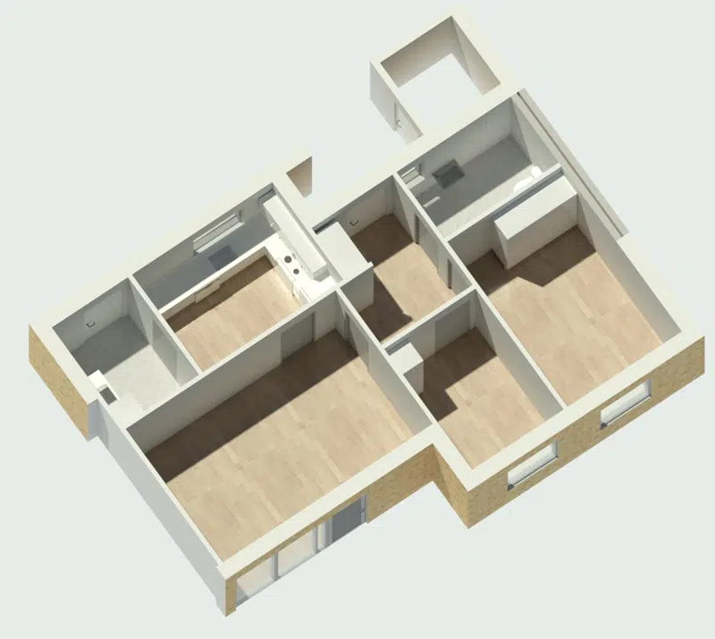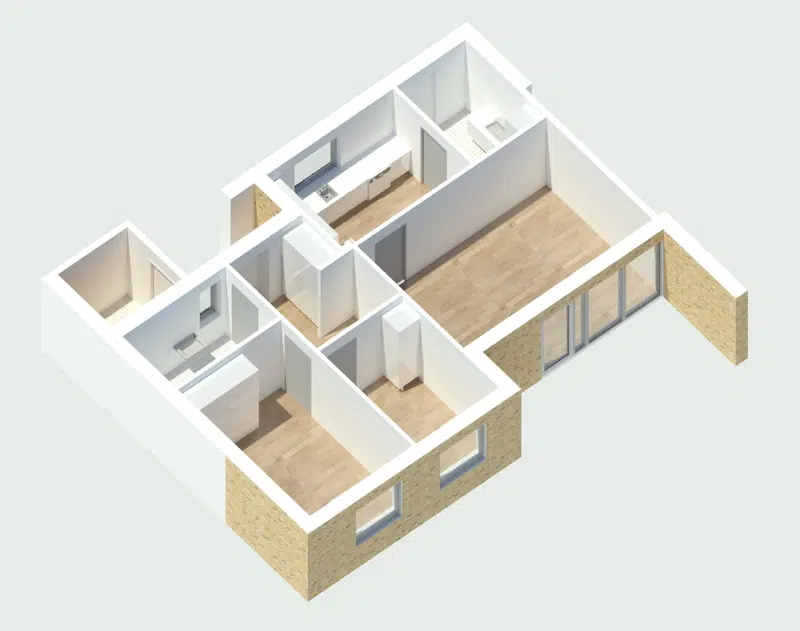 Afdelingen består af 2 rækkehuse som er opført i røde muresten som blev opfør i 2002. Der er 3 lejemål i hver. Boligerne har eget udhus.